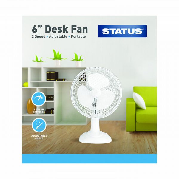 Status 6″ White Desk Fan Oscillating 2 Speed Settings