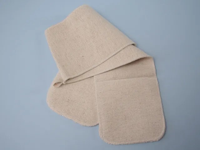 Pair of warp knitted oven gloves with double thickness on the palm and they are machine washable