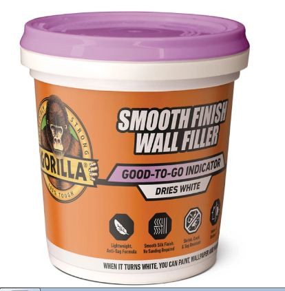 Gorilla Smooth Finish Wall Filler is the go-to product for durable repairs on walls, ceilings and cracks. Ideal for both small and large holes*, the lightweight formula is easy to use and doesn’t sag, shrink or crack. And thanks to its handy colour change feature, it goes on purple and turns white when it’s dry. So you’ll never be left guessing when your project is ready to go!